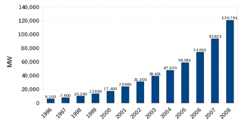 Rüzgar enerjisi: dünya çapında kurulu kapasite 1996-2008